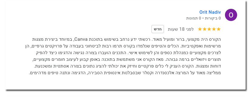 אחרי שגיליתי את קנבה, הבנתי שיש דרך פשוטה, קלה ונגישה להפסיק להיות תלויים באחרים. הקורס הזה נולד כדי להנגיש את הידע המקצועי שלי לכל אחת ואחד בלי צורך ברקע עיצובי